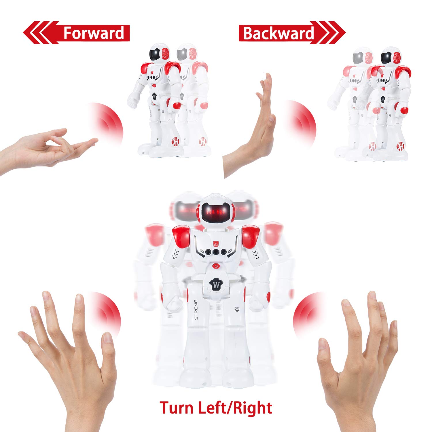🍭Commande à distance intelligente – le robot RC suit les commandes des mouvements de la main: mouvements voisinage l’avant, voisinage l’arrière, voisinage la gauche et voisinage la droite. La technologie de détection de mouvement permet également au robot d’priver les obstacles et de planifier à nouveau l’itinéraire.