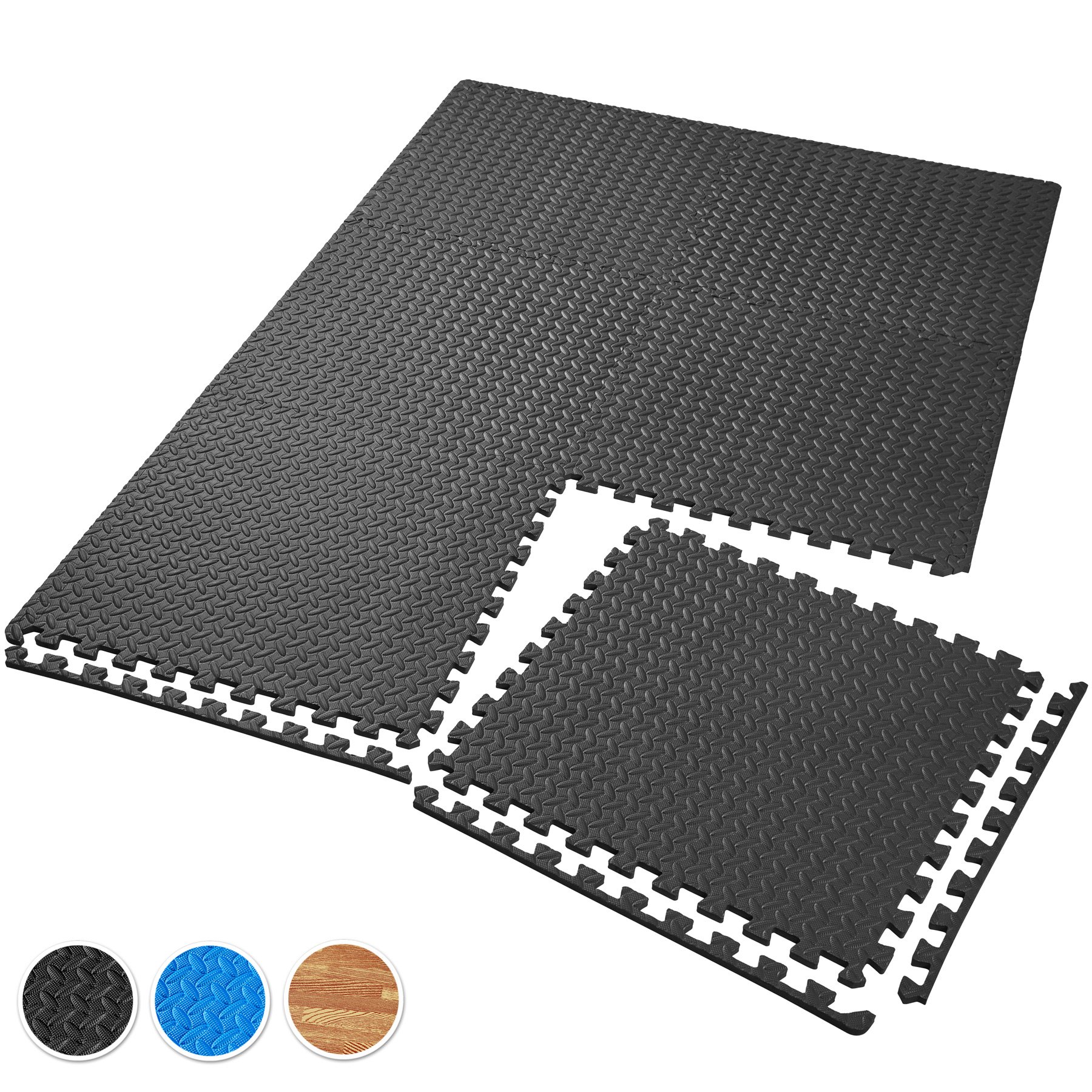 Protégez vos sols des rayures, des chocs et des éclaboussures avec le lot de tapis de protection de TecTake // Dimensions totales (Lxl) : 307 x 124 cm ou 246 x 185 cm // Dimensions d’un tapis (Lxl) : 61 x 61 cm // Largeur pièce de côté : 1 cm.