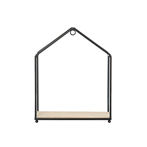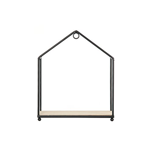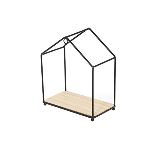 THE HOME DECO FACTORY HD4572 Set de 3 Etagères Forme Maison, Bois + Metal, Beige-Noir, 23x27x13 cm