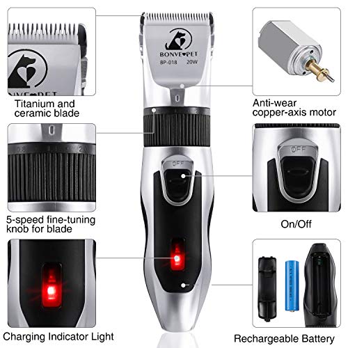 🐾【Résonance Faible, Vibration Minimale】 – Vous êtes toujours soucieux du trop de Résonance des tondeuses électriques ? Les tondeuses électriques Bonve pet contrôlent le plus faible Résonance de seulement 50db à la vitesse maximale de 7000 tr / min. Lorsque vous caressez votre
