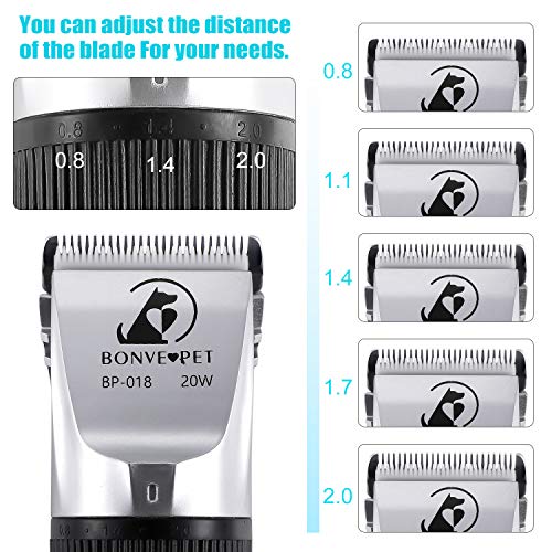 🐾【Lame Approchable à Remplacer et Nettoyer】 – Lame en céramique de titane amovible facilite le remplacement et le blanchissage. Et l’espacement de la lame peut transmettre de 0,8 mm à 2,0 mm, client dans les coupes de poils très courts. Cette tondeuse chauffe très peu, offre une tuerie excellente dans votre chien ou chat.