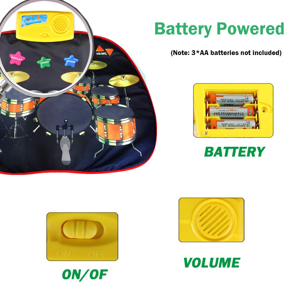 ♪∮ Facile à Stocker et Transporter — Grâce au matériau en polyester doux, le tapis musical peut être plié pour gagner de la place lorsqu’il n’est pas utilisé, très pratique à ranger et à transporter. Alimentation: 3x piles AA (non fournies). Grâce à la cn sans fil, les enfants peuvent jouer à ce tapis même à l’extérieur. Ã耀Ã耀Ã耀Ã耀