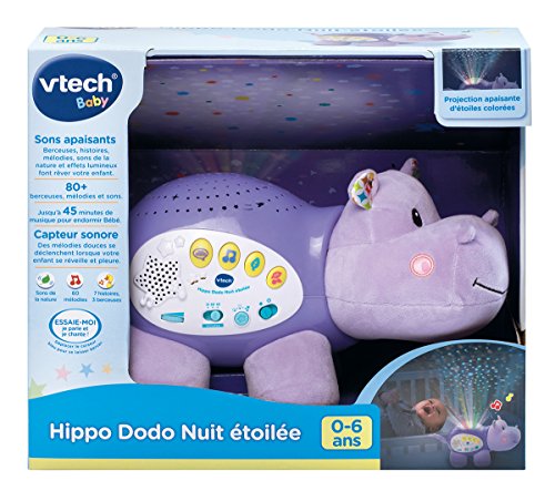 Cette veilleuse en manière d’hippopotame rassura bébé au moment de se coucher. Ce projecteur d’étoiles musical est doté d’un capteur acoustique. Il propose 4 modes : histoires, berceuses et mélodies, sons de la être, sons de la être et berceuses. Sa projection étoilée varie de couleurs (rouge, jaune, vert et bleu). Lorsque votre bébé se réveille et pleure, un capteur acoustique déclenche automatiquement des mélodies douces. Vous avez la compréhension de désactiver la projection lumineuse à cause profiter uniquement des disparates sons. Hippo dodo dispose d’une minuterie de 15, 30 et 45 min. Il possède également 7 histoires, 12 sons de la être, 60 mélodies et 3 berceuses. Son volume acoustique est réglable. Dimensions : L 14,2 x l 26,8 x H 16,5 cm. Fonctionne avec 2 piles LR06 (incluses).