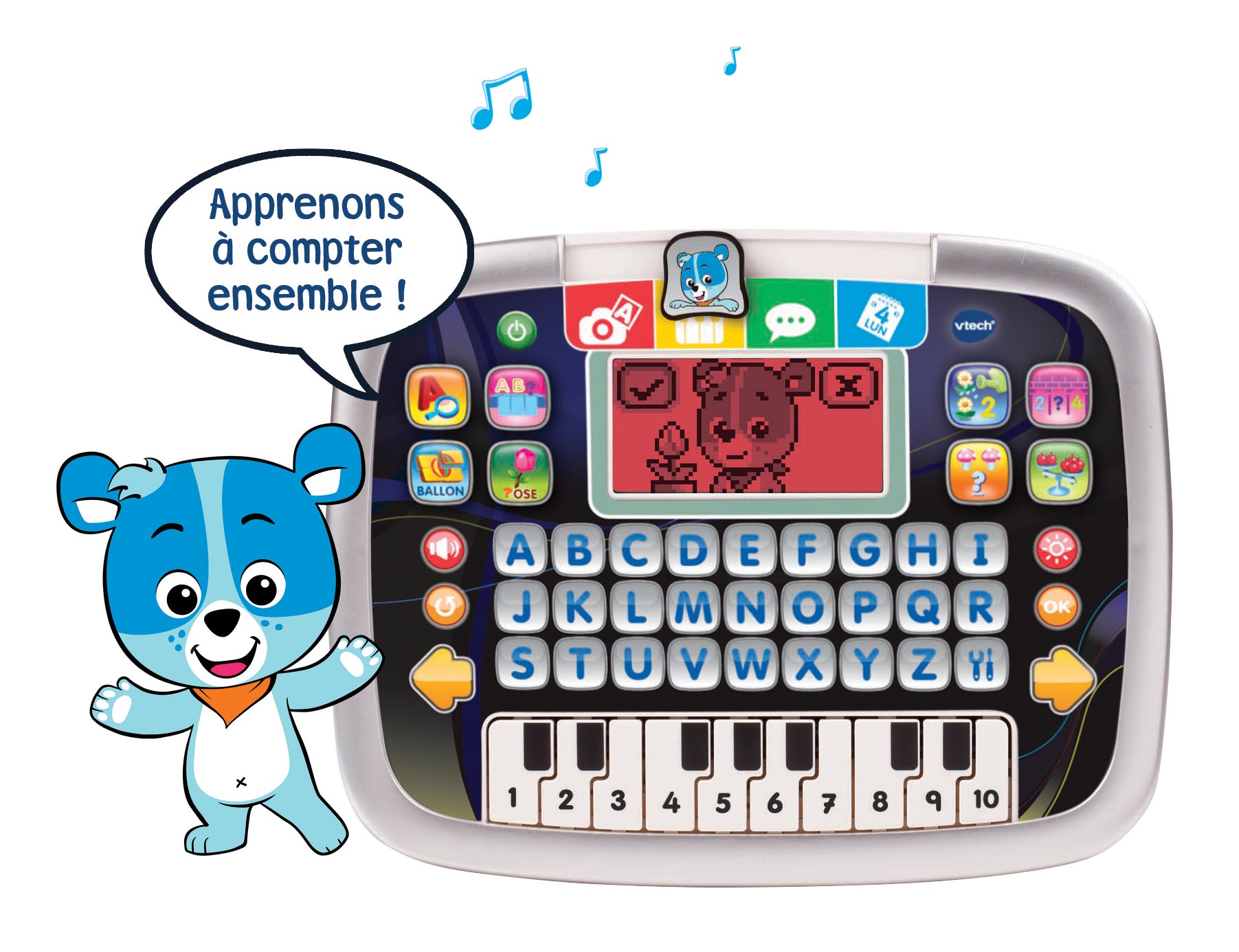 8 activités éducatives et 4 modes de jeu dans découvrir : les chiffres, les lettres, un jeu de examen, la musique, le syllabaire et les animaux.