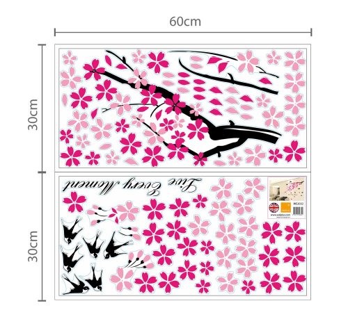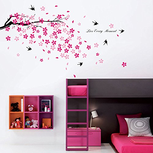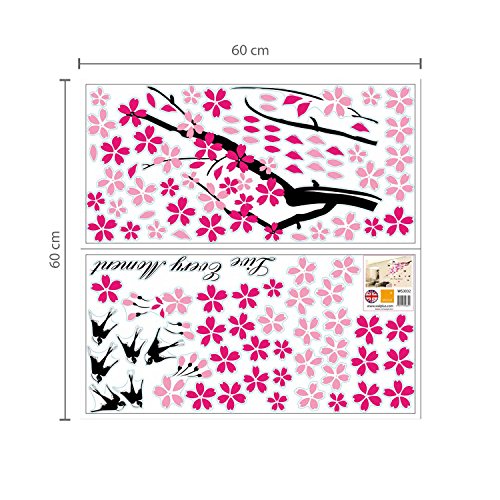 Walplus Hirondelles & FLEURS Autocollant Mural – Bureau Récompense de maison, 150cm x 80cm, PVC, amovible, autocollant, Rose