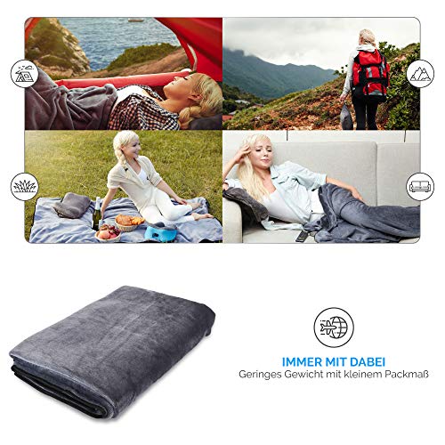 Wellira Couverture De Voyage | Couverture Légère et Compacte pour Avion, Camping, Extérieur 170x100cm Grise Lavable en…
