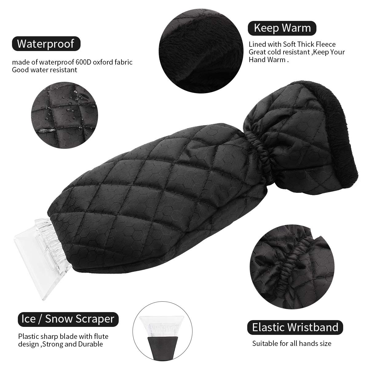 SURPER QUALITÉ: Le gant est en oxford imperméable et en polaire chaude. La doublure épaisse et douce en polaire garde les mains au sec et au chaud tout en éliminant le givre et la glace du pare-brise.