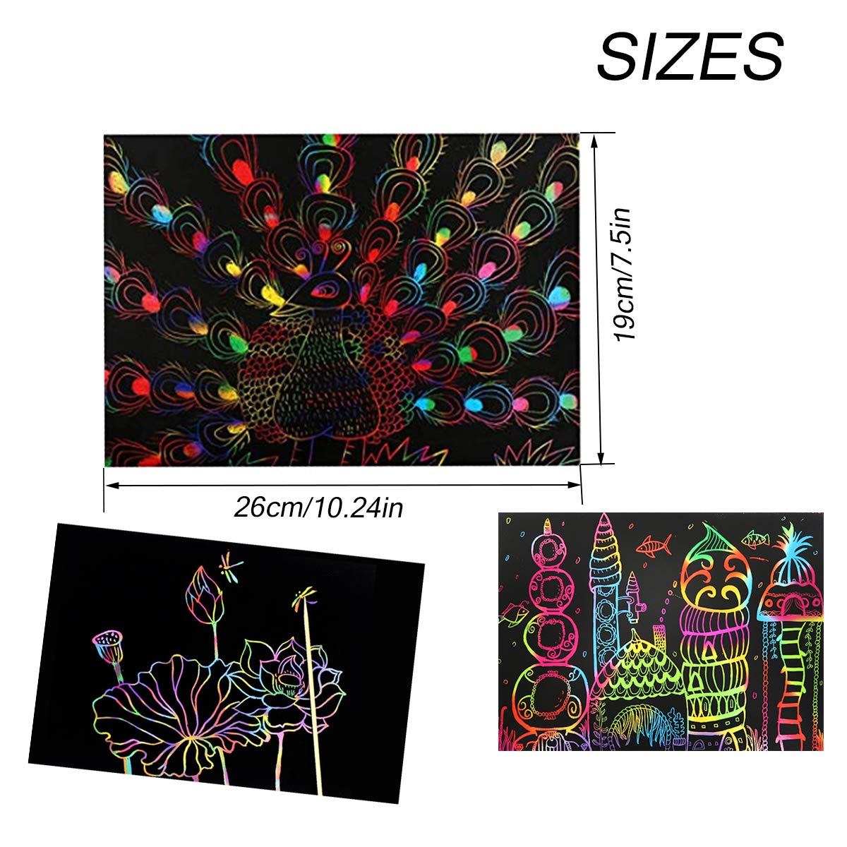 Sûr et non toxique: Les planches à gratter sont non toxiques, sans danger dans les enfants, on ne sait jamais de quelle couleur il sera visible en grattant la surface avec le stylo en bois!