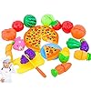 Comprend 24 pièces, une combinaison de fruits et légumes, pizza, plat, planche à découper et couteau.