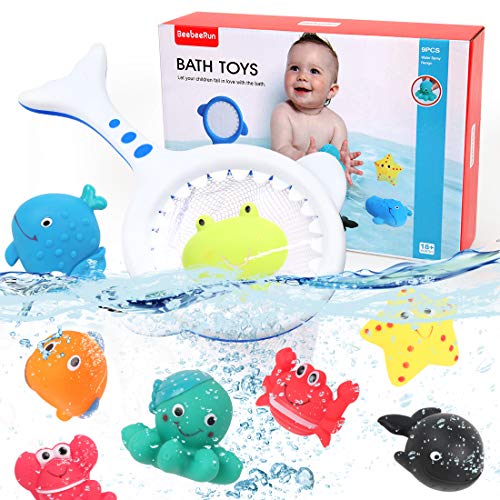 BeebeeRun 9PCS Jouets de Bain, 8 Animaux Marins et 1 Filet de Pêch Jeu de Pêche Jouets de Piscine Animaux Flottants pour…